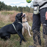 Take all the dog treats and poopbags you need for your daily walks with you using this easy to carry pouch. With a clasp to hang it off your belt or use to included strap to wear it around your waist. The magnetic seal makes it easy to get your dog those tasty treats!